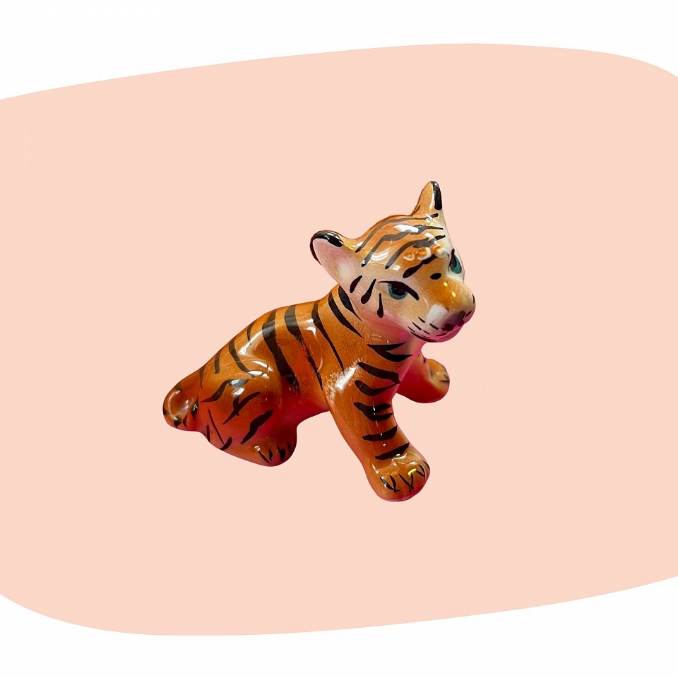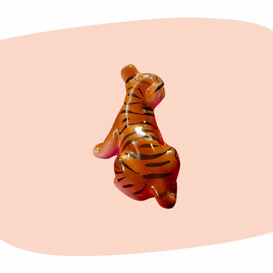 Adorable et plein de caractère, ce petit tigre en céramique émaillée capture l’esprit espiègle et la grâce des figurines rétro. Ses rayures peintes à la main, son expression vive et ses tons chauds d’orange et de noir en font une pièce décorative irrésistible.