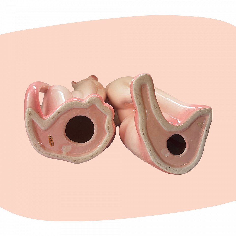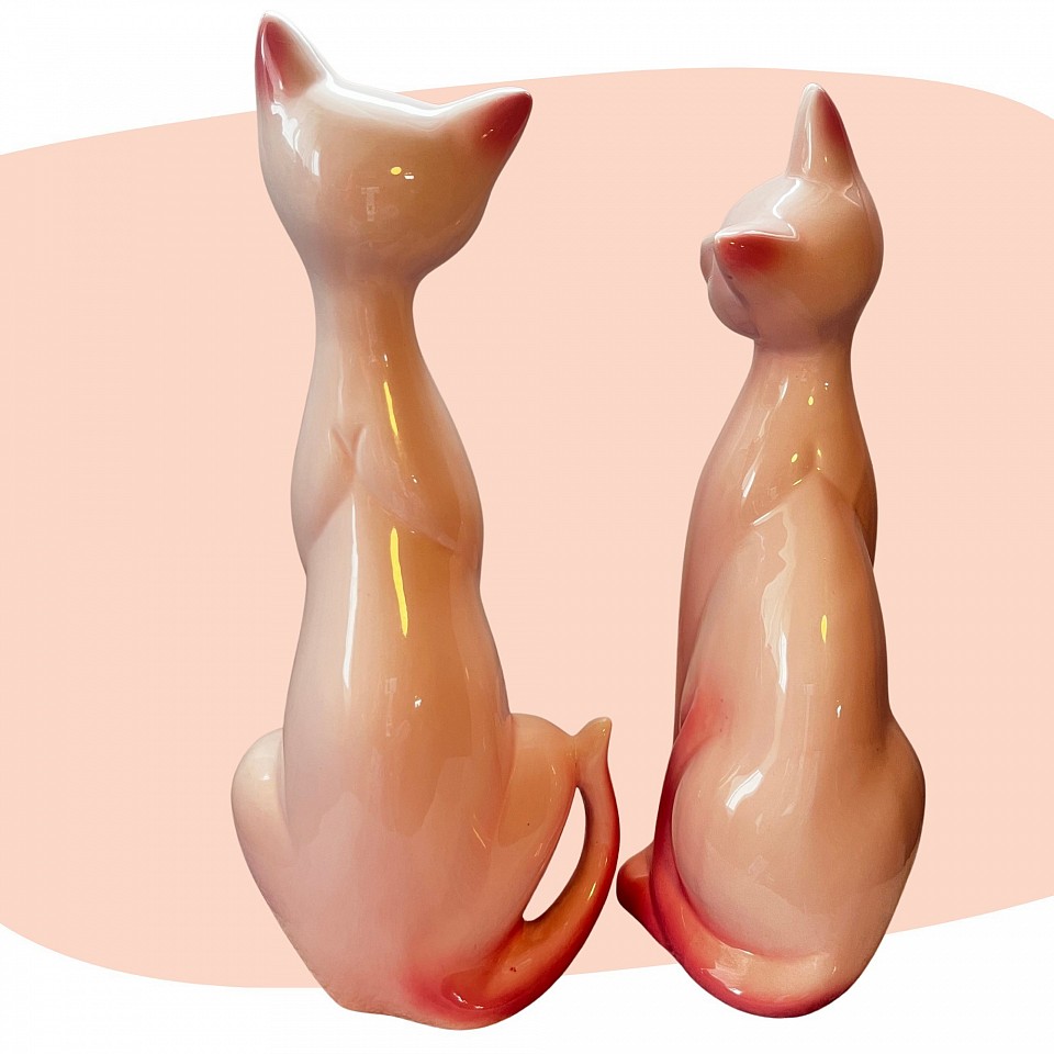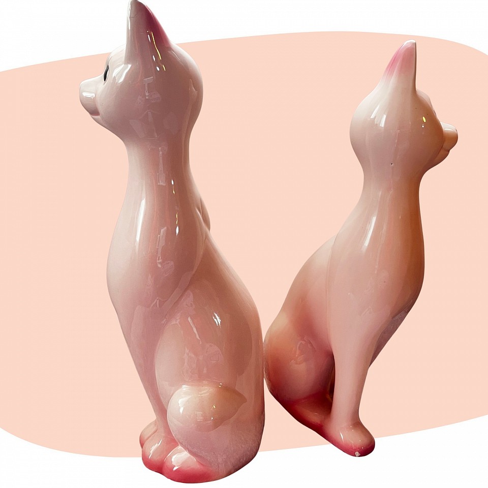 Élégants et attendrissants, ces deux chats en céramique incarnent à merveille le charme rétro des années 60. Leurs silhouettes élancées, leurs grands yeux expressifs et leurs délicates teintes rose poudré leur confèrent une allure à la fois chic et romantique. 🌸