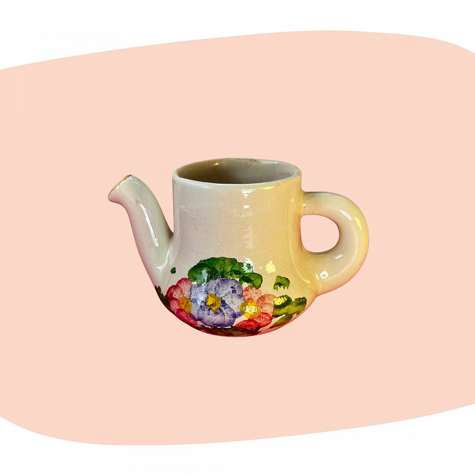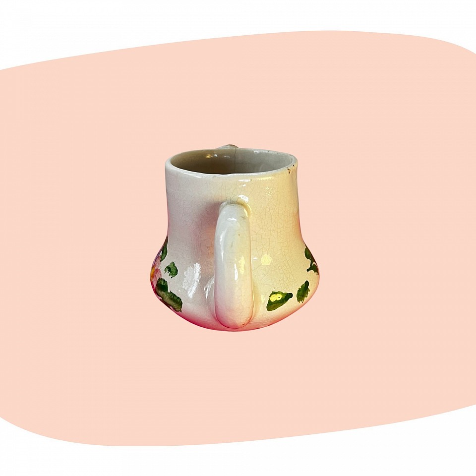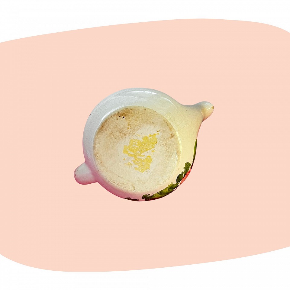 Charmant petit pichet en faïence vernissée, orné d’un délicat motif de fleurs multicolores peint à la main. Ses courbes rondes et sa poignée circulaire lui donnent une allure unique et pleine de caractère. Les craquelures naturelles de la glaçure ajoutent une touche d’authenticité et de douceur à ce bel objet rétro. 🌿